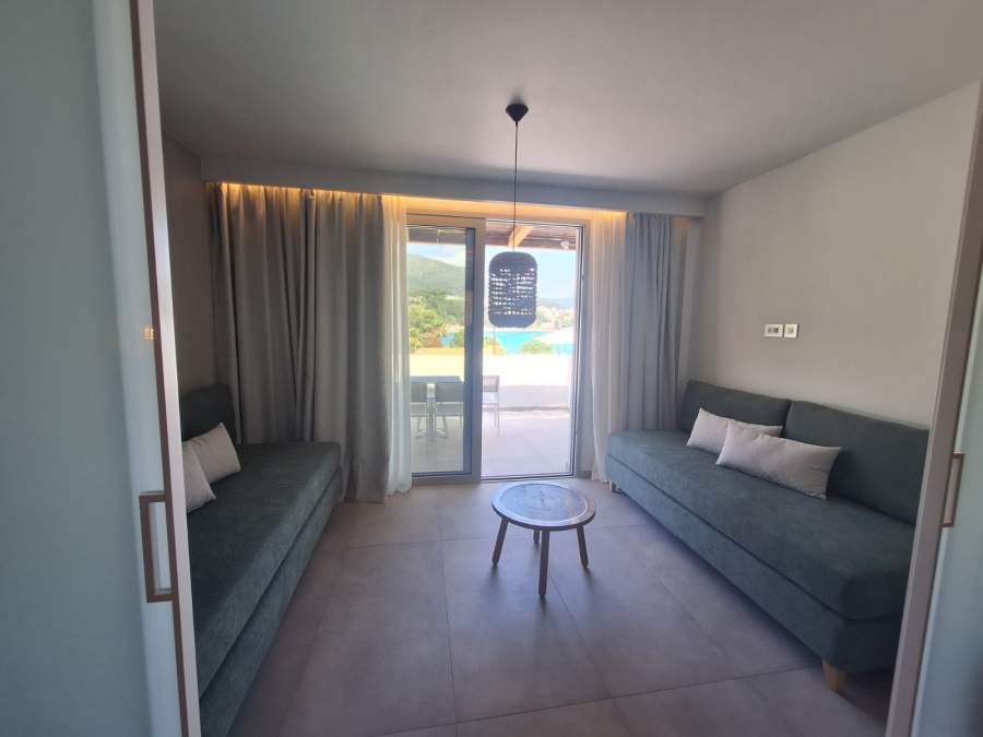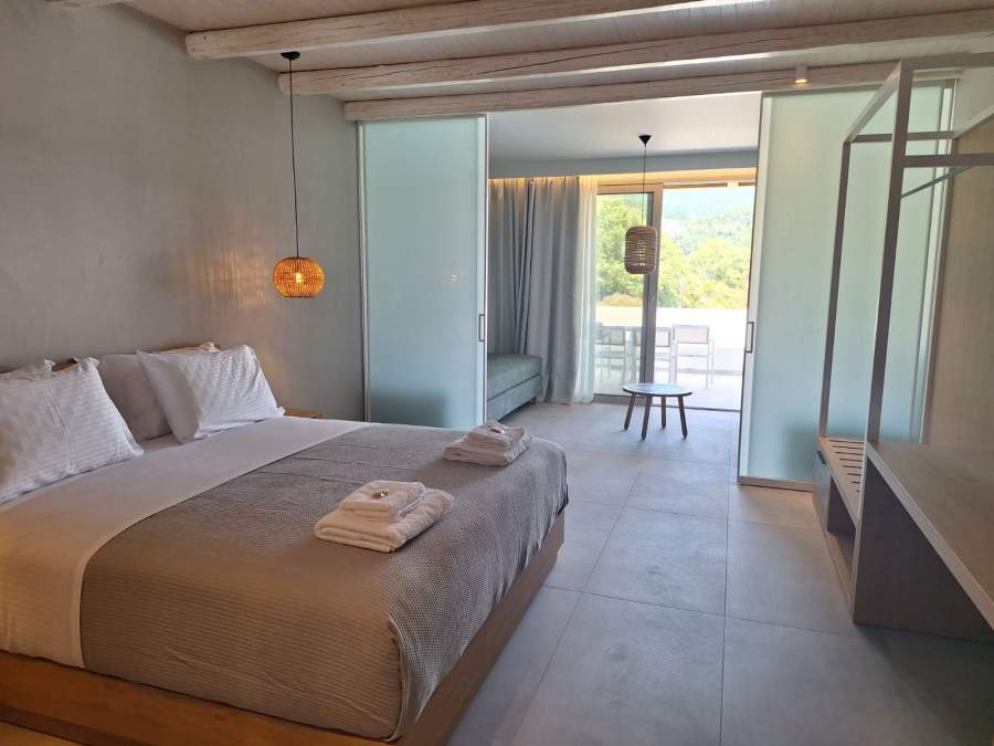 Superior family room.The Superior Family Room is approximately 42 sqm and can accommodate up to 4 guests. It features a queen double bed and two single sofa beds, separated by a sliding door in the middle for enhanced privacy. Guests can also enjoy a comfortable veranda with a beautiful sea view.